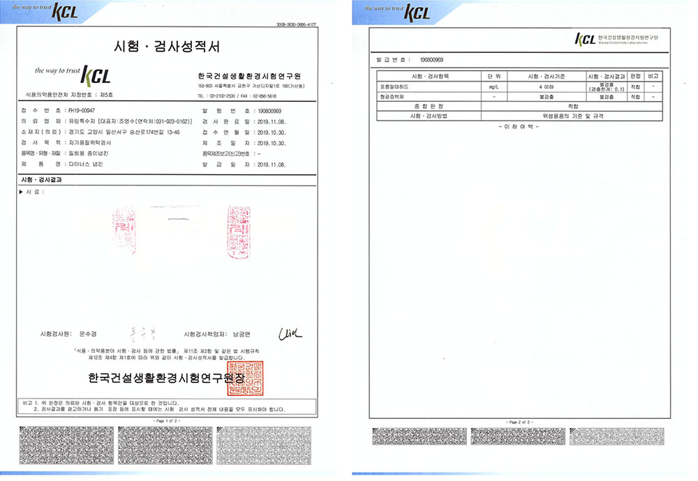 종전의 두루마리 화장지보다 지력을 더 강화해서 1겹용으로는 평량 21.0g/㎡ , 2~3겹용으로는 평량 16.0g/m 의 원지를 2-3겹으로 합지한 후 엠보싱으로 압착하여 감은 것으로 미세먼지가 적고 도톰하여 신축성과 흡수력이 좋고 부드러우며 물에 잘 풀려 변기의 막힘을 방지하여 줍니다.